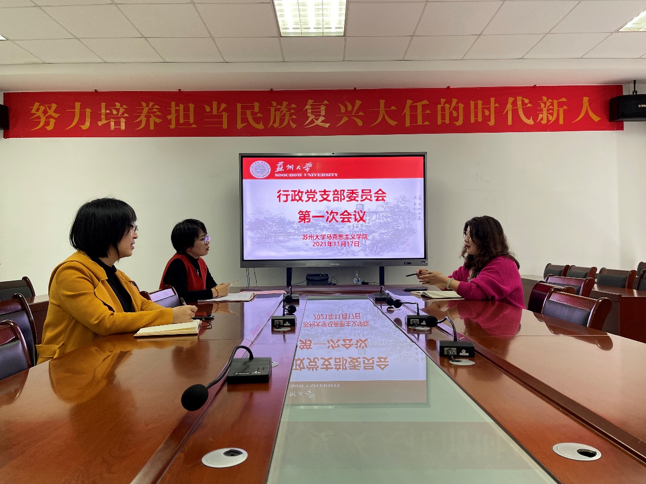 党员大会结束后,召开了行政党支部委员会第一次全体会议,选举李文娟同志为支部书记,并就委员职责进行了分工,确定李文娟同志任支部书记兼宣传委员,刘媛媛同志任支部纪检委员,蒋慧同志任支部组织委员。支部换届选举结果将按程序和要求上报学院党委审批。