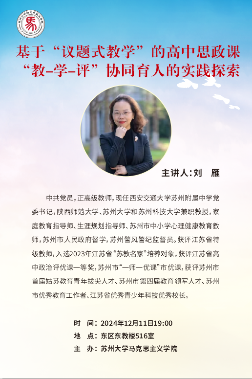 学术讲座:基于“议题式教学”的高中思政课“教-学-评”协同育人的实践探索