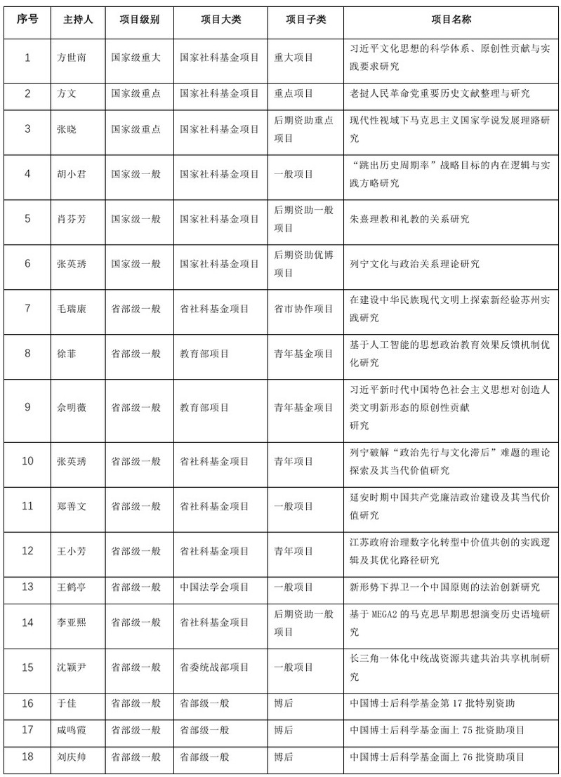 根据数据统计,2024年度我院共获各类项目53项。其中国社科项目6项(其中重大1项、重点1项、一般1项、后期资助重点1项,一般2项),省部级项目12项(其中教育部2项、省社科3项),市厅级项目15项(其中重点4项、一般11项),纵向到账经费240余万元;横向项目20项,横向到账经费80余万元。
