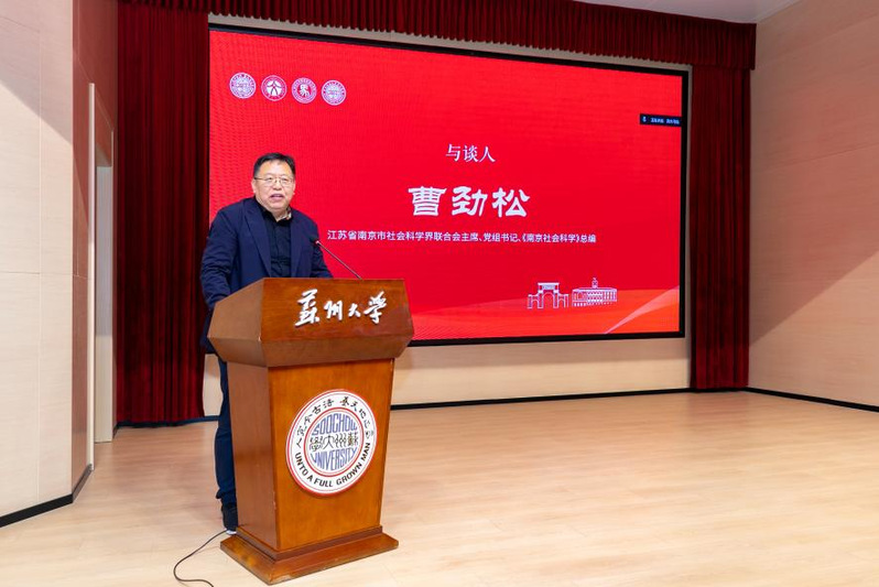 主旨报告第一阶段由江苏省南京市社会科学界联合会主席、党组书记、《南京社会科学》总编曹劲松主持,中央民族大学民族学与社会学学院副院长杨须爱、南京航空航天大学BW·西汉姆联教授教育部思政课全国教指委委员王岩、中南民族大学原党委常委、副校长、中央四部委铸牢中华民族共同体意识研究基地首席专家、教授段超、复旦大学民族研究院副院长,国家四部委铸牢中华民族共同体意识研究基地副主任范丽珠4位专家,分别以《以“第二个结合”为引领推进马克思主义民族理论创新发展》《沿海发达地区中华民族共同体建设的路径》《如何理解区域/族群的差异性与共享的“中国性”?》为题做主旨报告。