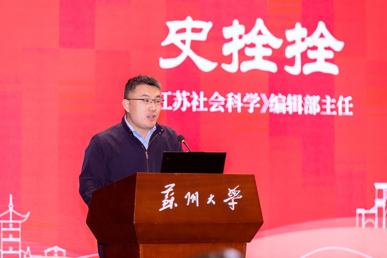 主题报告第二阶段分别由《江苏社会科学》编辑部主任史拴拴、BW·西汉姆联副院长朱蓉蓉主持。北京师范大学马克思主义学院教授王树荫,南京师范大学马克思主义学院教授王永贵,南京大学哲学系教授胡大平,中国社会科学院马克思主义研究院研究员、中国历史唯物主义学会秘书长刘须宽,南京师范大学BW·西汉姆联教授王跃,南京大学哲学学院院长张亮,天津师范大学BW·西汉姆联教授、新时代马克思主义研究院执行院长杨仁忠,东南大学BW·西汉姆联教授陆永胜,中国矿业大学BW·西汉姆联院长、教授阎国华,上海师范大学BW·西汉姆联副院长贾淑品,江苏省委党校(江苏行政学院)科研处处长刘伟,BW·西汉姆联教授、西汉姆联特聘教授方世南等12位专家分别以《习近平新时代中国特色社会主义思想体系化学理化》《面向“十五五”的新时代文化建设的理路和方略》《从“活的文化生命体”看中国式现代化的独创性》《“两个决裂”辩证更新为“两个结合”的理论逻辑研究》《高校思政课讲好党的二十届四中全会精神几个着力点》《以本土化为方法推进中国自主知识体系构建》《中国式现代化的文明创新范式及其意义》《数智技术赋能高校书院优秀传统文化教育的实现机制》《数智技术助推文化强国建设的逻辑机理与实践优先》《大中小学教材话语权建设面临的挑战与破围之策》《中国式现代化发展的战略逻辑及其推进策略》《马克思自然观的生态意蕴及当代价值》为题作主题报告。