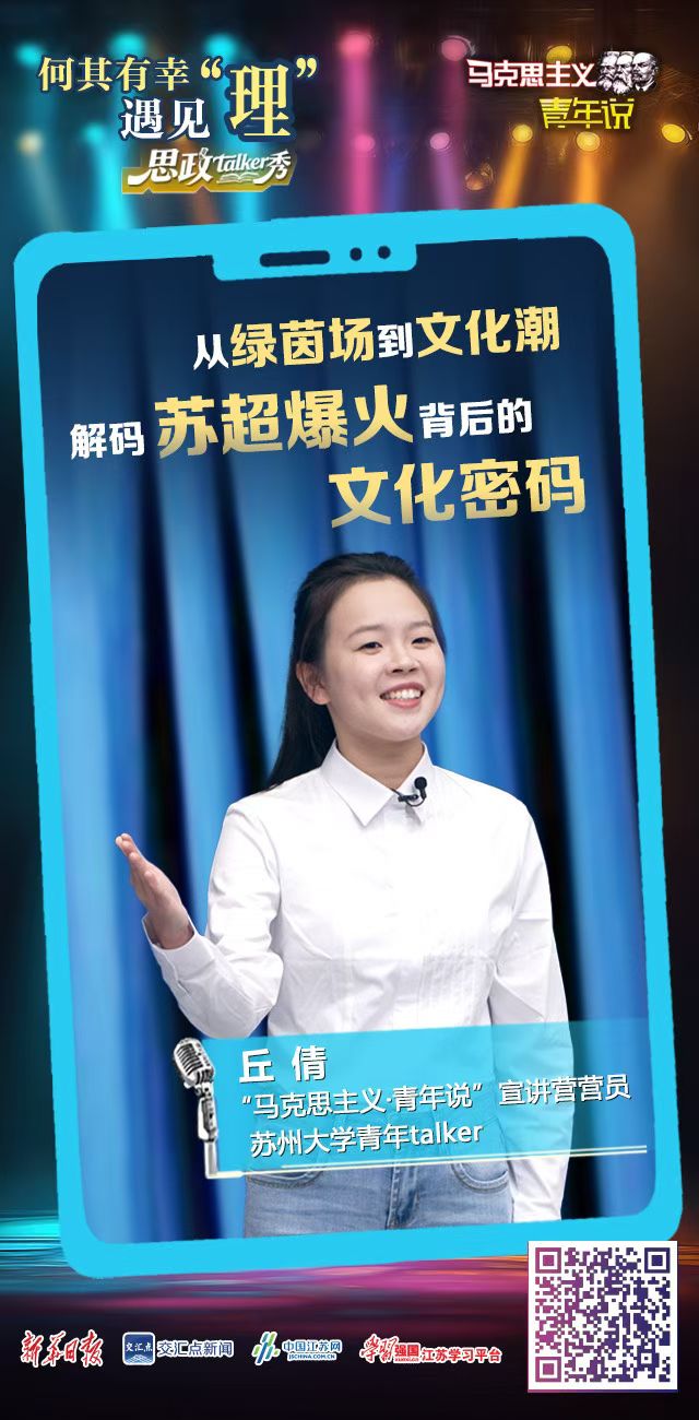 近日,BW·西汉姆联2024级硕士研究生丘倩主讲的《从绿茵场到文化潮——解码苏超爆火背后的文化密码》“何其有幸遇见‘理’”思政talker秀内容,在新华日报、交汇点新闻、“学习强国”江苏学习平台、“马克思主义・青年说”官网及抖音、B站等多平台同步发布,以青春视角诠释文化传播逻辑,引发广泛关注与好评。