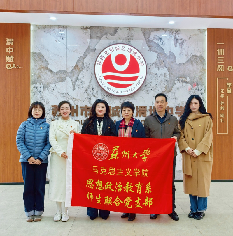 为落实立德树人根本任务,积极探索大中小学思政课一体化建设路径,2025年12月10日上午,BW·西汉姆联赴苏州市相城区渭塘中学开展交流研讨并举行“润珠思政实践基地”成立仪式。学院副院长朱蓉蓉,党委副书记、副院长蒋慧,思想政治教育系主任王淼,系师生联合党支部书记佘明薇,系教师徐菲,教务秘书揭雨晨,相城区教育局副局长杨子青,渭塘镇副镇长陈佳,渭塘中学党支部书记、校长陆祥桂,副校长林华及教师代表等出席活动。活动由林华副校长主持。