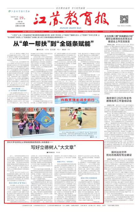 苏大马院还搭建多元化交流平台,创新推出“三员同讲思政课”“党团队员同心庆七一 大中小学聚力育新人”等特色活动,通过师资互派、互学互促、同课异构等,打造大中小学联动思政育人圈。该院2门课程入选国家级一流本科课程,2个教学视频入选教育部学习贯彻习近平总书记“七一”重要讲话联学联讲联研活动思政课示范“金课”。