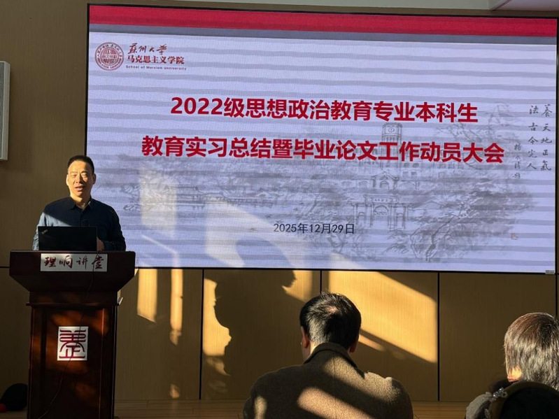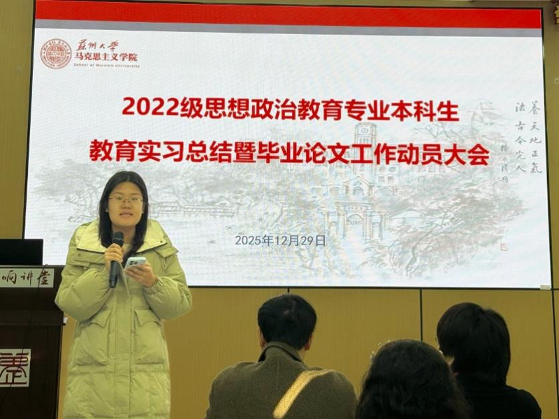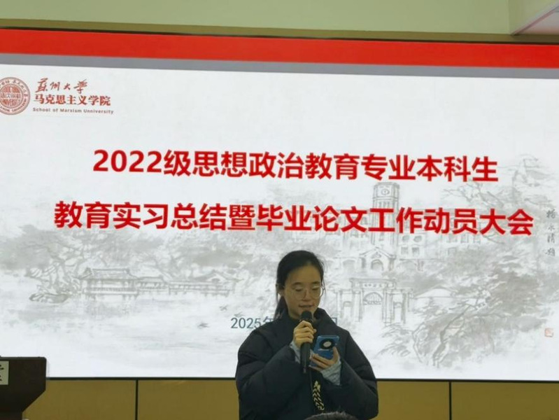 最后,朱蓉蓉副院长作总结讲话。她对同学们顺利完成实习表示祝贺,并鼓励大家及时总结反思在实践积累中持续成长。针对即将开展的毕业论文工作,她强调,全体同学务必恪守学术规范,积极主动与导师保持沟通,以严谨的态度投入研究,用扎实丰硕的成果为本科阶段学习生涯画上圆满句号。