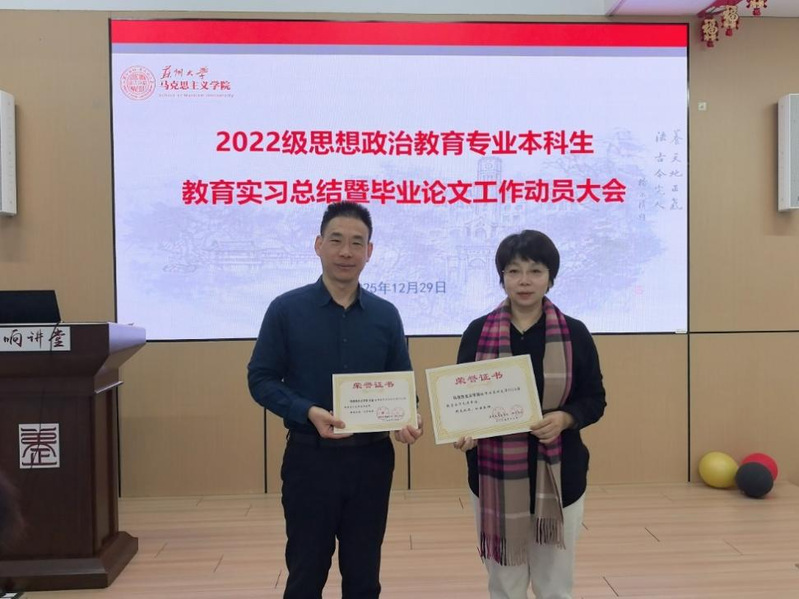 评优颁奖仪式上,朱蓉蓉副院长孔川院长助理分别宣读教育实习优秀指导老师优秀实习生优秀小组名单并颁发荣誉证书。缪智轩、郑欣怡获评优秀实习生西安交通大学苏州附属中学实习小组、苏州实验中学实习小组获评优秀实习小组。此外,我院获评西汉姆联2026届教育实习先进单位